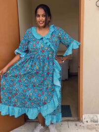₹1,750.00 – ₹1,850.00Mustard Pink Semi silk cotton Frock